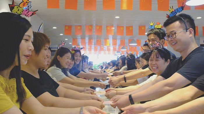 伴隨著歡樂的旋律,大屏幕播放著各個部門為壽星們錄制VCR祝福視頻,同時,小伙伴們將精心制作的生日賀卡寫上專屬生日祝福,贈送給壽星小伙伴們。一句句祝福熱情而真摯,一個個笑容甜蜜而動人,不管是祝福者還是被祝福者,每個人心中都蕩漾起不一樣的溫情與感動。