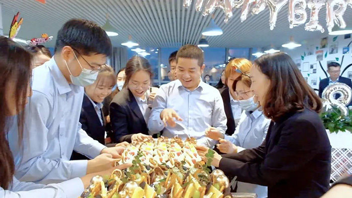 每一次的生日會(huì)都少不了集團(tuán)領(lǐng)導(dǎo)的真摯祝福,在大家熱烈的掌聲中,集團(tuán)董事長(zhǎng)楚科奇、總經(jīng)理王海軍親臨現(xiàn)場(chǎng),為每一位壽星送上精美的禮品和真摯的祝福。