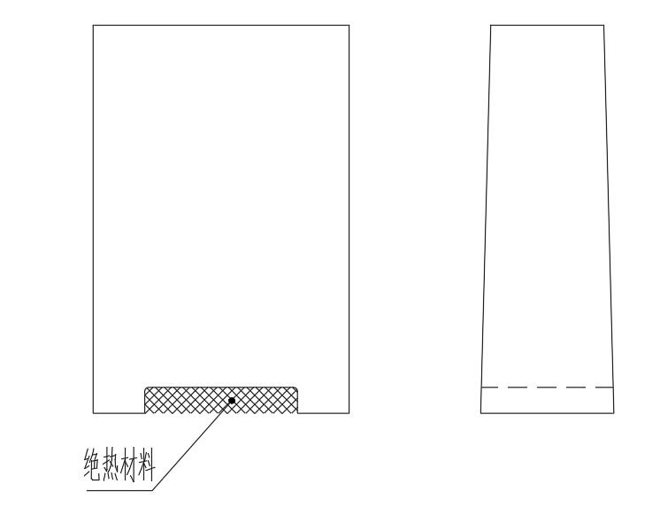 鑒于此,可以采用凹槽型復(fù)合磚設(shè)計(jì),如圖4所示,工作層材質(zhì)不變,尾部開(kāi)槽后填充納米板等絕熱材料。這種凹槽磚型復(fù)合磚,不僅生產(chǎn)和施工方便,而且可以取得降低筒體外壁溫度30-50℃左右效果。