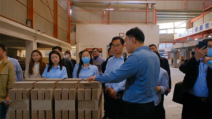 zui后,在定形耐火材料生產基地,秦經理帶領大家走進生產車間和實驗室,每個人都被眼前精細的成品材料、標準化的生產車間、完整成熟的生產線所震撼。秦經理的細致講解讓大家了解到產品從原料采購、成分配比、模具制作,到半成品加工、高溫燒制這一整套生產流程。在參觀過程中,新員工們針對
