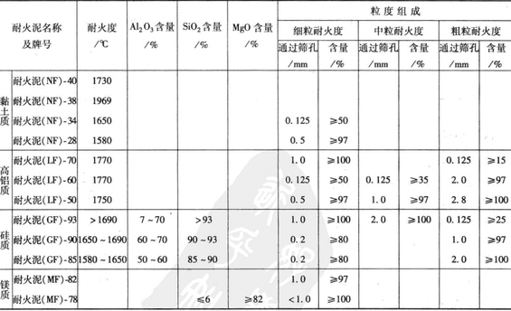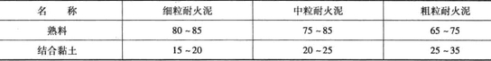 常用的耐火泥有粘土質、高鋁質、硅質、鎂質耐火泥等。在砌筑粘土耐火磚時,應用粘土質耐火泥。粘土質耐火泥是由粘土質熟料和結合粘土組成,其成分見下圖。